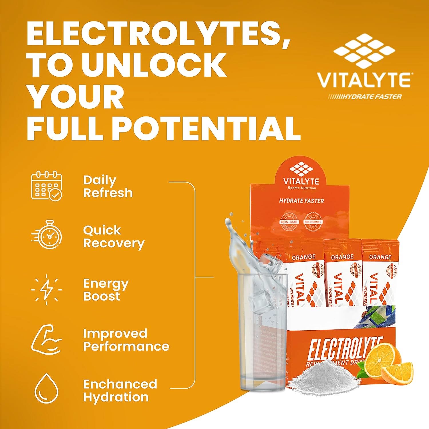 Improved Hydration - Replenishes electrolytes faster than water alone to prevent dehydration during activity.